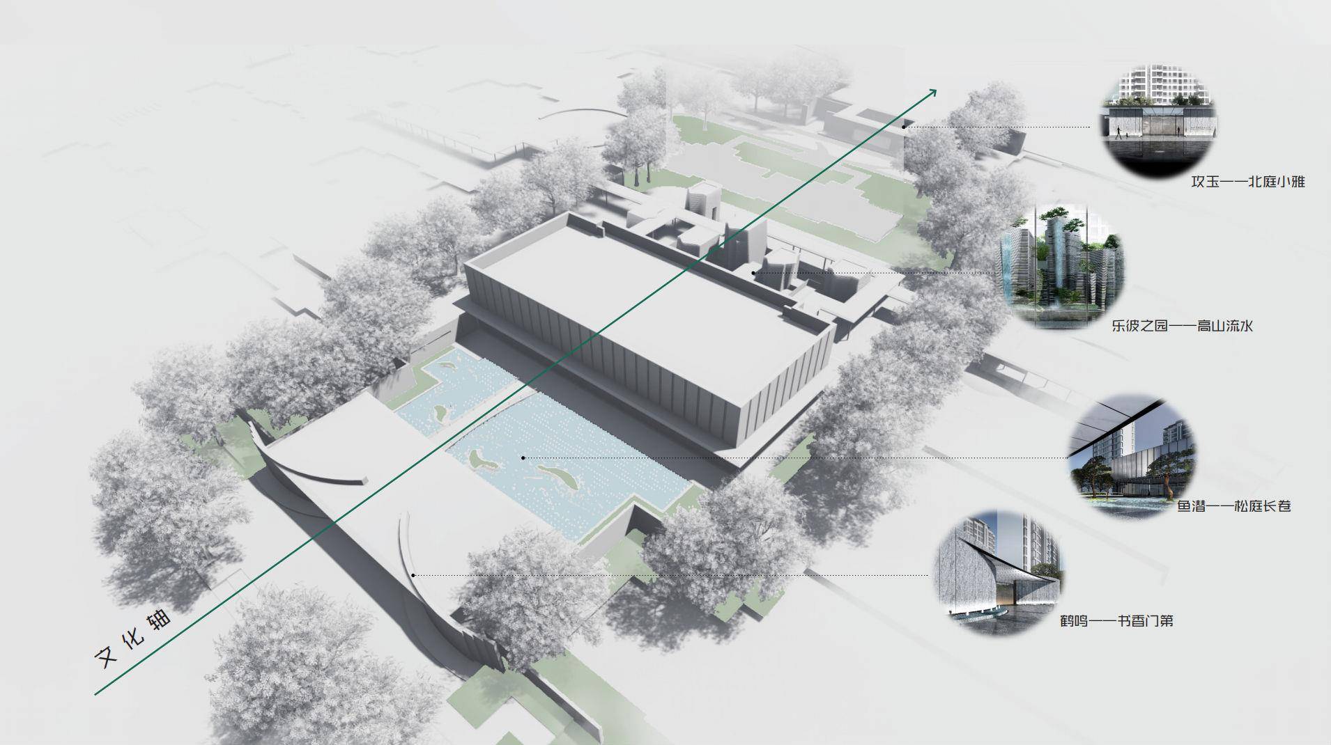 项目将整个文化轴作为重点倾力打造,一进入小区,就能被浓郁的书香文化气息所感染,通过诗词长廊、景观小品等表现形式,呈现出一个书香浓郁的文化之家。