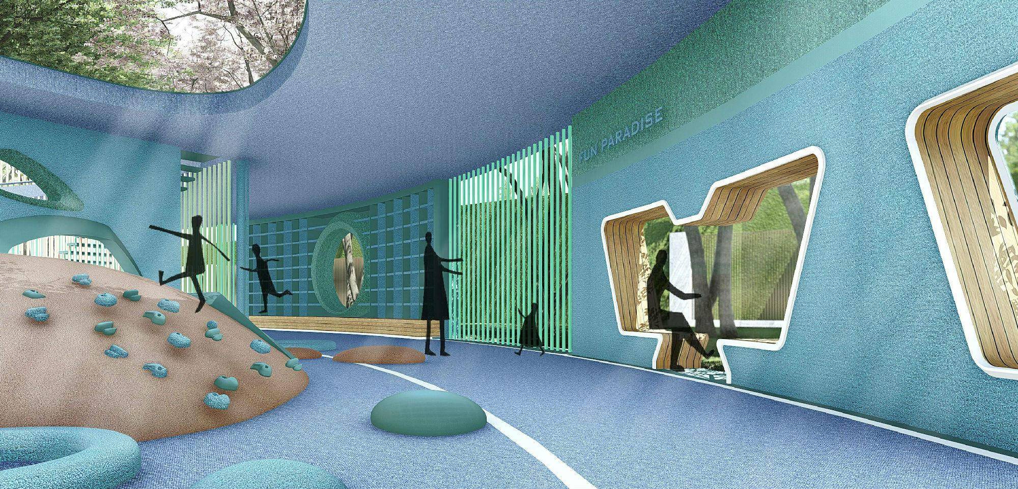 项目结合国际先进理念,融合功能、安全、趣味、体验、互动五位一体,在半遮阴式的场地设计出老人儿童活动区,赋予了空间更多的可能性。